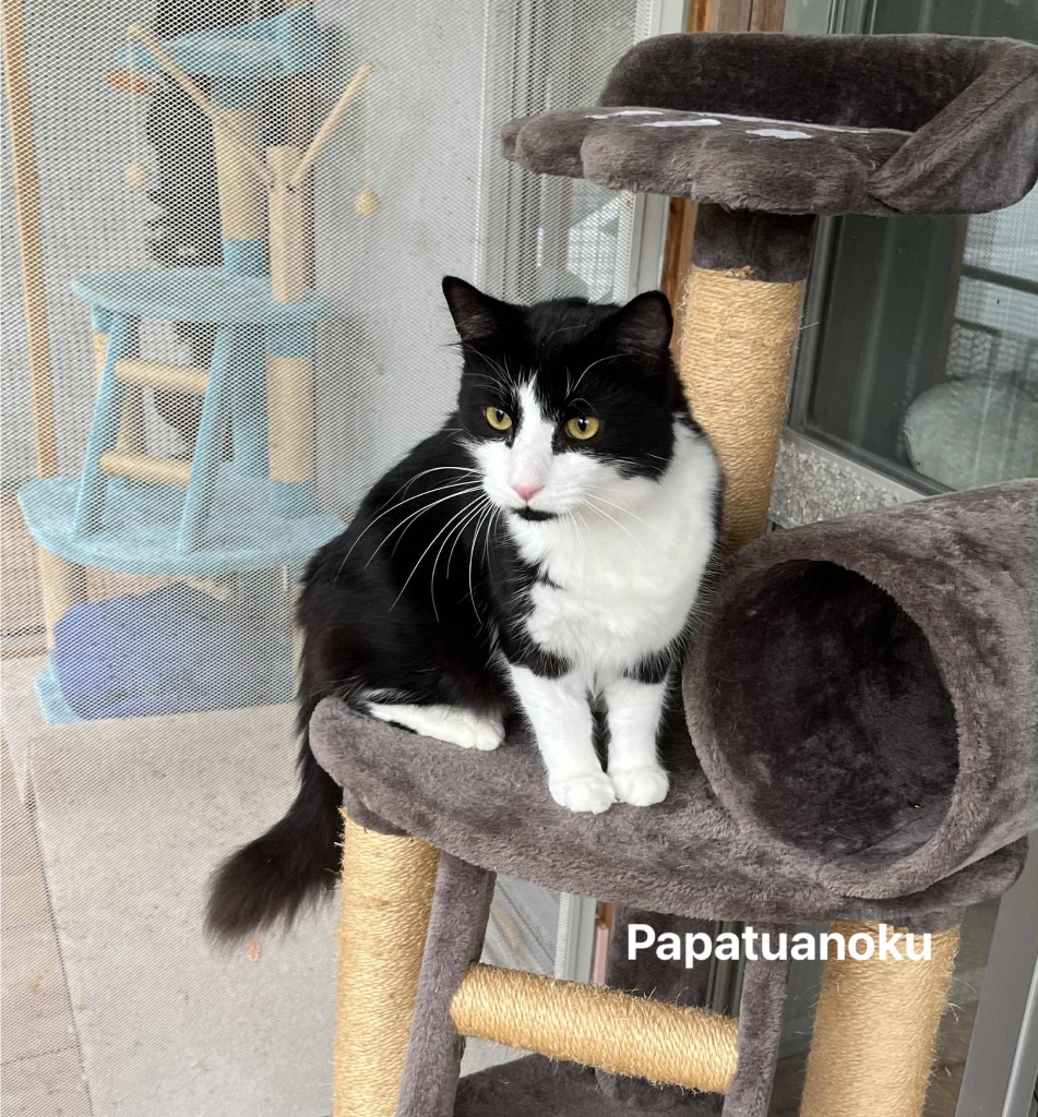 Introducing Papatuanoku, a spirited 13-month-old cat who's just stepping out of his kitten phase and ready to charm his way into your heart. Known for showering affection through enthusiastic head butts, Papatuanoku is eager to welcome you into his world, where pats are always welcomed.