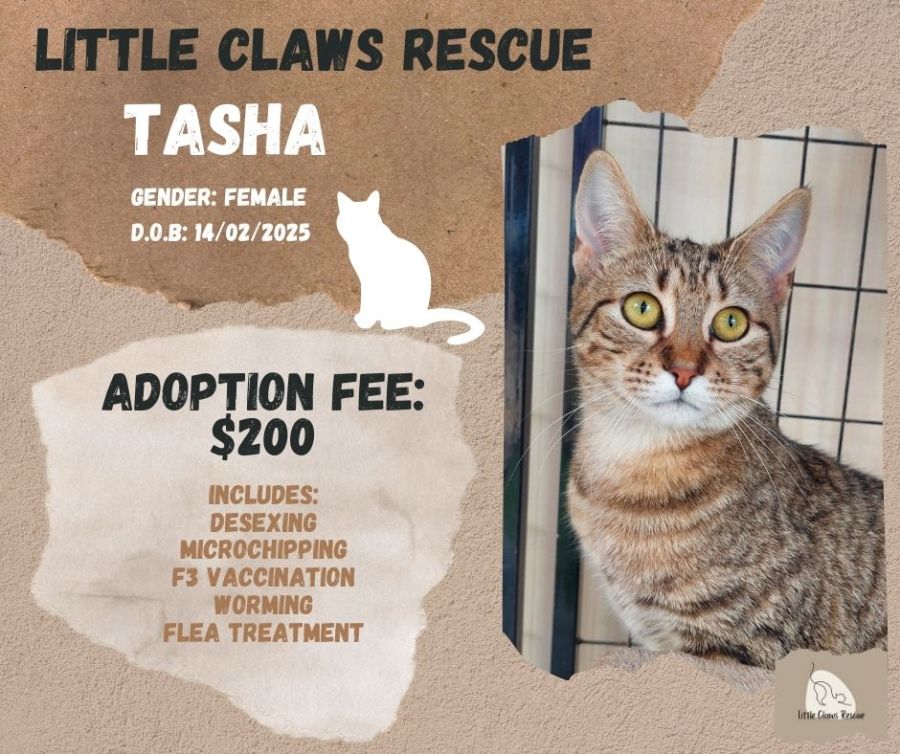 Meet Tasha, the friendly feline who is eager to find a new family ready to welcome her into their home. Tasha is a perfect blend of cuddliness and playfulness, making her a delightful addition to your household.