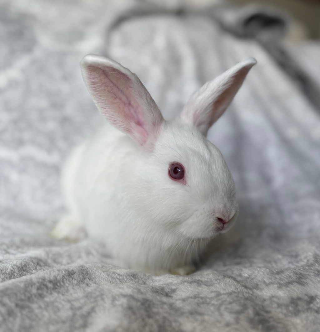 He is a sweet, cheeky, and endlessly curious little boy who will charm his way into your heart from the very first hop. He is full of personality, always on the lookout for adventure, and loves exploring every nook and cranny of his world. Sprout will thrive in a home with gentle children/adults who understand his needs and can provide a large indoor only setup to keep his light features safe from the sun. His energy and curiosity mean he would love lots of space to jump, zoom, and discover to his heart's content. This little explorer may also enjoy the company of another bunny friend, pending a successful meet and greet. Sprout absolutely loves enrichment! He will happily shred paper or cardboard, tackle treat puzzles, dash through tunnels, and show off his acrobatic skills with impressive jumps and hops. Anything that lets him satisfy his curiosity and keep active is an instant favourite!