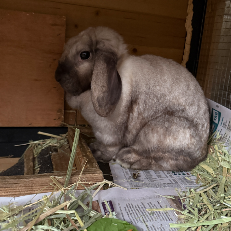 Hi, I'm Dessert. I'm a female European Rabbit, about 1 year old. I’m curious, gentle, and I love quiet cuddles as I warm up to new friends. I have no known issues around children, so a family with gentle kids would be a great match for me. I adore hay, fresh greens, and crunchy veggies. Daily playtime in a rabbit-proofed space makes me feel safe and happy, and I love exploring tunnels, boxes, and cozy hideaways. I’m calm when I know the routine and the space is safe, but I’ll happily hop to show you I’m excited to be with you. My ideal home is patient, rabbit-experienced, and able to provide daily enrichment and reliable care. I rely on a loving, steady environment and a kind person who’s willing to help me settle in and continue my adventures. If you’re ready to share your home with a friendly, loving bunny, I’d love to meet you and start this new chapter together.