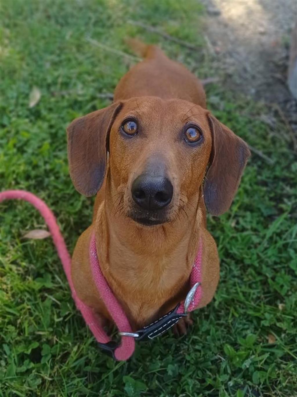 Sandy is a sweet and affectionate little Dachshund who loves being close to her people. She's tactile and enjoys gentle pats and cuddles, often leaning in or nudging your hand for more attention. Once she trusts you, Sandy's warm and engaging personality shines through - she'll happily roll over for belly rubs or follow you around just to be part of whatever you're doing. She's food motivated and takes treats gently, making her on-going training a joy.