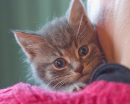 I am one of dahlia's six tabby kittens. I am the only boy in the litter!