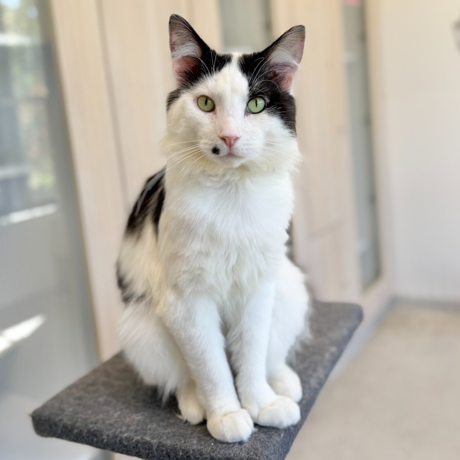 Fev absolutely adores pats and gentle attention. Once he trusts you, he’s very affectionate and enjoys spending time close to his humans, soaking up love at his own pace. He also has a curious side and likes to quietly explore his environment, always interested in what’s going on around him.
