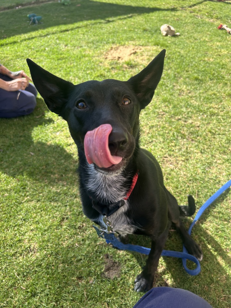 Hi! I'm Nixie, a 10-month-old Kelpie full of love, curiosity, and energy! I might be a little shy at first, but once I warm up, I'm a bouncy, playful little bundle who adores spending time with my favorite people. I love running, exploring, and playing games, but I still need gentle encouragement to feel brave and confident.