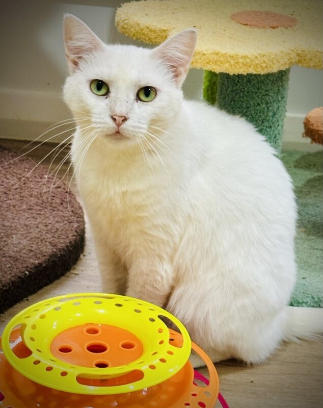 Hi, I’m Lily. I’m a female Domestic Short Hair looking for my forever home! I’m a gentle, curious girl who loves sunbeams, soft blankets, and feather toys 🪶🌞. At first I’m a little shy, but once you earn my trust I’ll purr you into a smile and follow you for cuddles ❤️😺. I adore window watching, nap breaks, and gentle chin scratches. I’m litter-trained, independent, and I like a calm routine. I’d thrive in a quiet home with adults or older kids who give me time to settle in. With patience and daily gentle play, I’ll blossom into a loving, loyal companion. I’m looking for a forever family who enjoys cozy evenings, gentle pets, and a steady, affectionate friend to share adventures at home 🏡🐾. If you think I could be the one, let’s meet! I’m Lily, ready to bring warmth, purrs, and love into your life 😺❤️