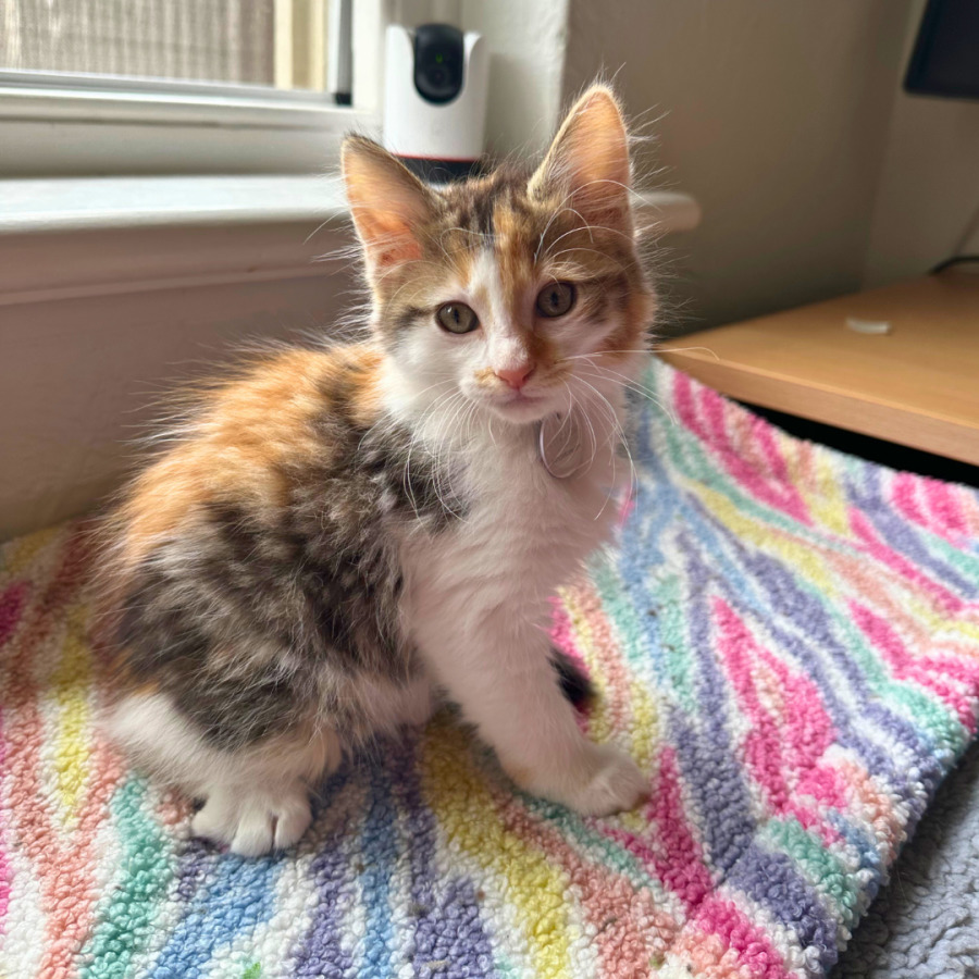 Meet Jasmin, the prettiest little calico with a charismatic presence that is sure to capture your heart. With her striking coat and playful demeanor, Jasmin embodies a delightful mix of affection and fun. Her confident and lively nature makes her an ideal companion, bringing joy and warmth into any home she graces.