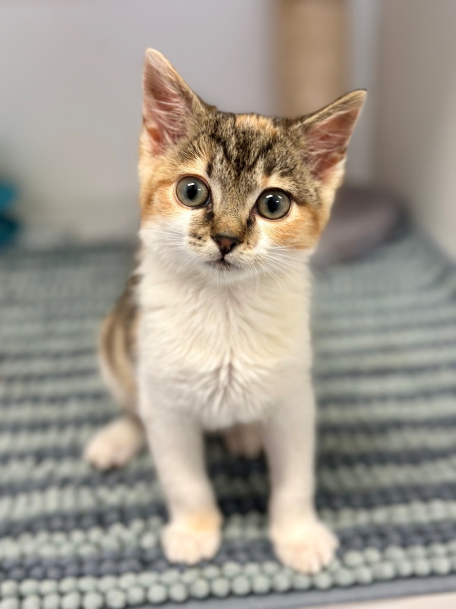 I came into the shelter as a 1 week old kitten so I was taken into foster care and hand raised, i have been living in my foster home with large dogs, other cats, a bird and a High energy toddler whom I love and love to play with. I am also VERY responsive to my name and will come when called.