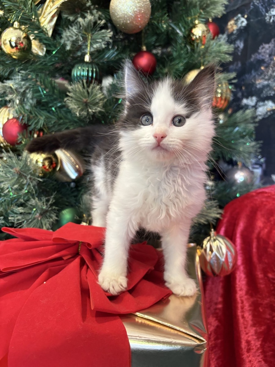 Meet Calippo, an endearing 8-week-old kitten ready to fill your home with affection and warmth. With her striking white and black fur, Calippo is not only a beauty but also brimming with personality. This little bundle of joy is as playful as kittens come, her heart filled with curiosity and love.