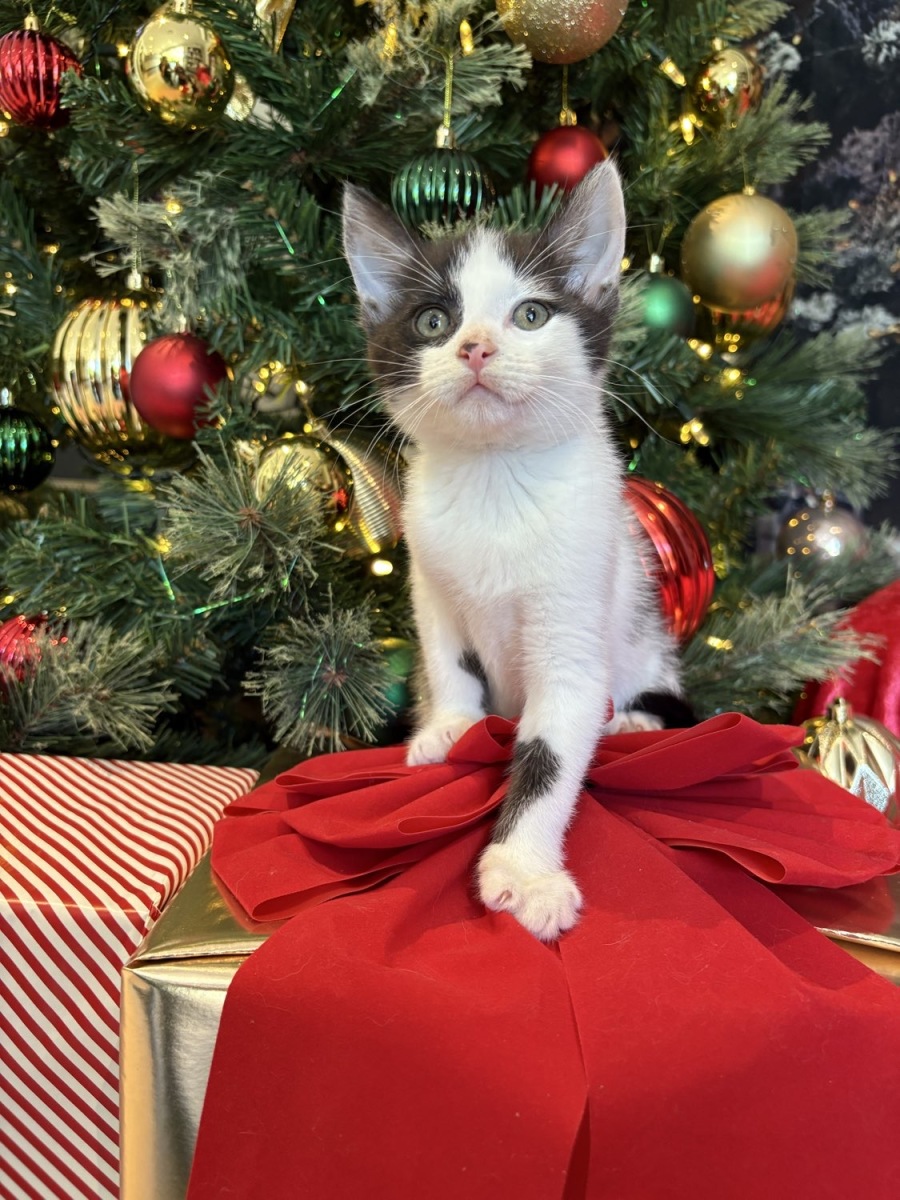 Introducing Camello, an adorable 8-week-old male White & Black Domestic Short Hair kitten with a heart full of curiosity and playfulness. This charming little fellow was rescued at just three weeks old and has been lovingly hand-raised by our dedicated veterinary nurses.