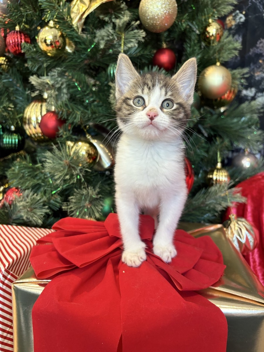 Introducing Cannoli, a delightful 8-week-old female Tabby and White Domestic Short Hair kitten who combines sweetness with charm, making her an absolute joy to be around. With her striking tabby markings and playful demeanor, Cannoli captures the hearts of everyone she meets. Even at her young age, she exhibits a gentle and docile nature, which makes her an ideal companion for those looking to add some warmth to their home.