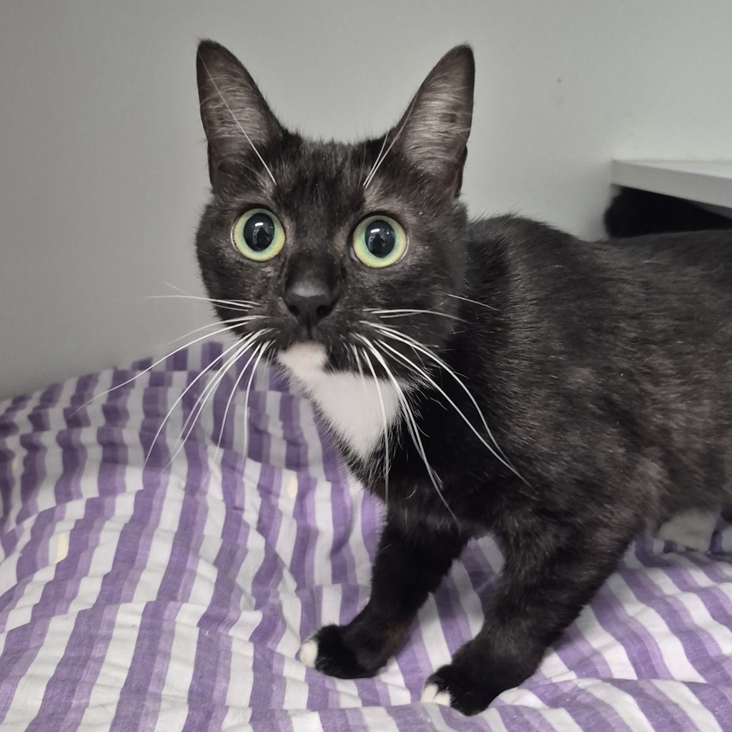 She enjoys calm environments, cosy hiding spots, and people who let her come forward in her own time. When she's comfortable, she'll happily show you her softer, sweeter side - whether that's leaning in for affection or batting at toys with enthusiasm.