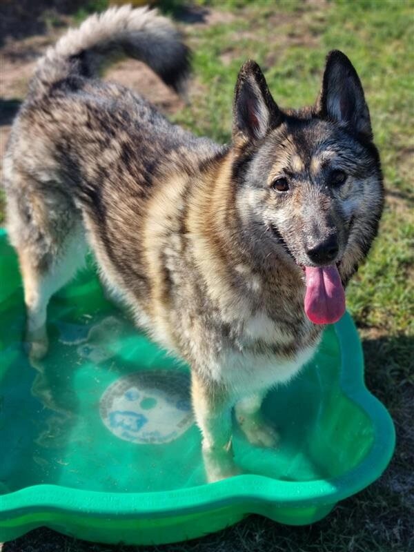 I’m a 3-year-old German Shepherd x Alaskan Malamute, which means I’m equal parts clever, loyal, and fluffy — a mix of brains and heart wrapped up in one beautiful coat (if I do say so myself).