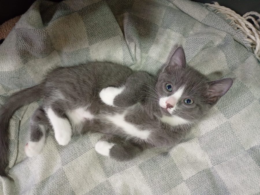 Meet me, sweet Willow. With my blue and white markings I am the prettiest little girl. I am gentle and quite placid but with boundless energy like a typical baby. I came into care with my sister Whisper who I am pictured with. We have the best fun exploring and romping then curl up together for snuggles. I have a gorgeous coat with really soft grey spots amongst my main colour which is quite unusual. I purr upon contact and have a ferocious appetite. I am having all my vet work completed on the 10/11 and will be available a few days after.