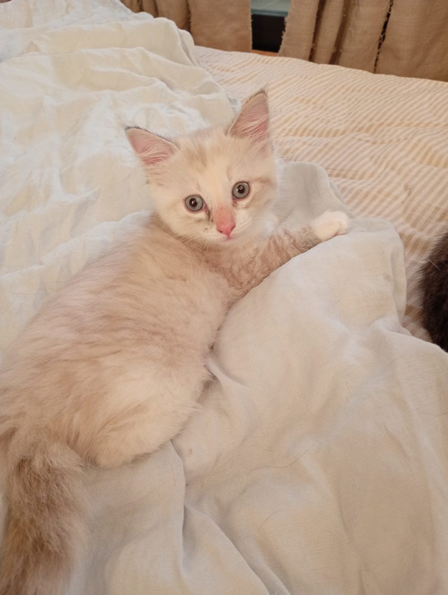 How gorgeous is this girl? Mixed breed but a bit of seal point and a creamy/beige coat. Pictured with my sister Willow who I came into care with. I greet my humans with purrs and face rubs. I am quite responsive to attention. I have so much energy to burn and am a ferocious foodie!!! I am extremely curious as all kittens are and like to chat to people with my little voice. Very sweet and gentle. My vet work will be completed on the 10/11 and I will be available a few days after that.