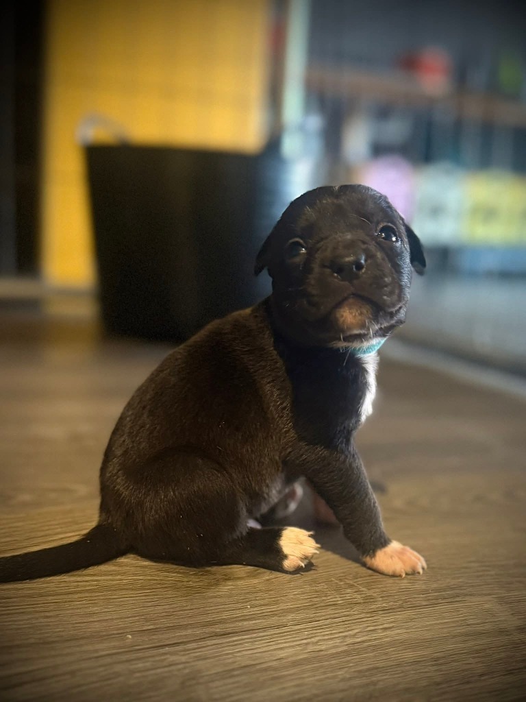 This little one is part of a beautiful litter of 11 puppies (6 boys and 5 girls) who came into care with their mum, a gentle Staffy mix, when they were just a few days old. Dad is unknown. Each pup has grown into a happy, healthy, and sweet-natured youngster now looking for a family of their very own.