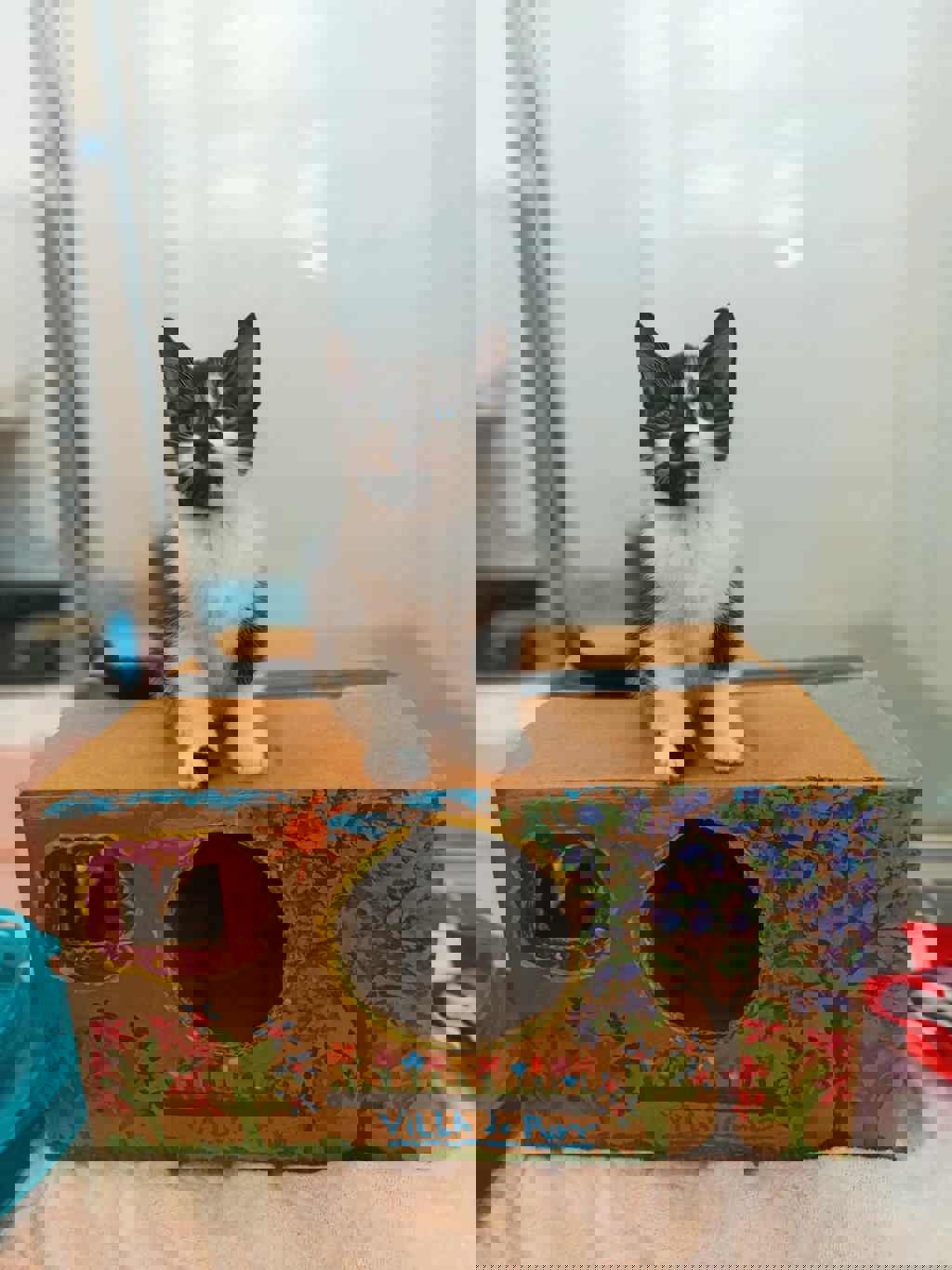 If you're looking for a kitten with personality, affection, and a whole lot of charm, Leonard is your guy. This super-friendly, attention-loving boy adores people. If he thinks you're not giving him enough love, he'll happily "scream" to remind you-and then climb you like a mini jungle gym to get closer. Meal times are especially entertaining, as Leonard unleashes his full Tarzan routine!