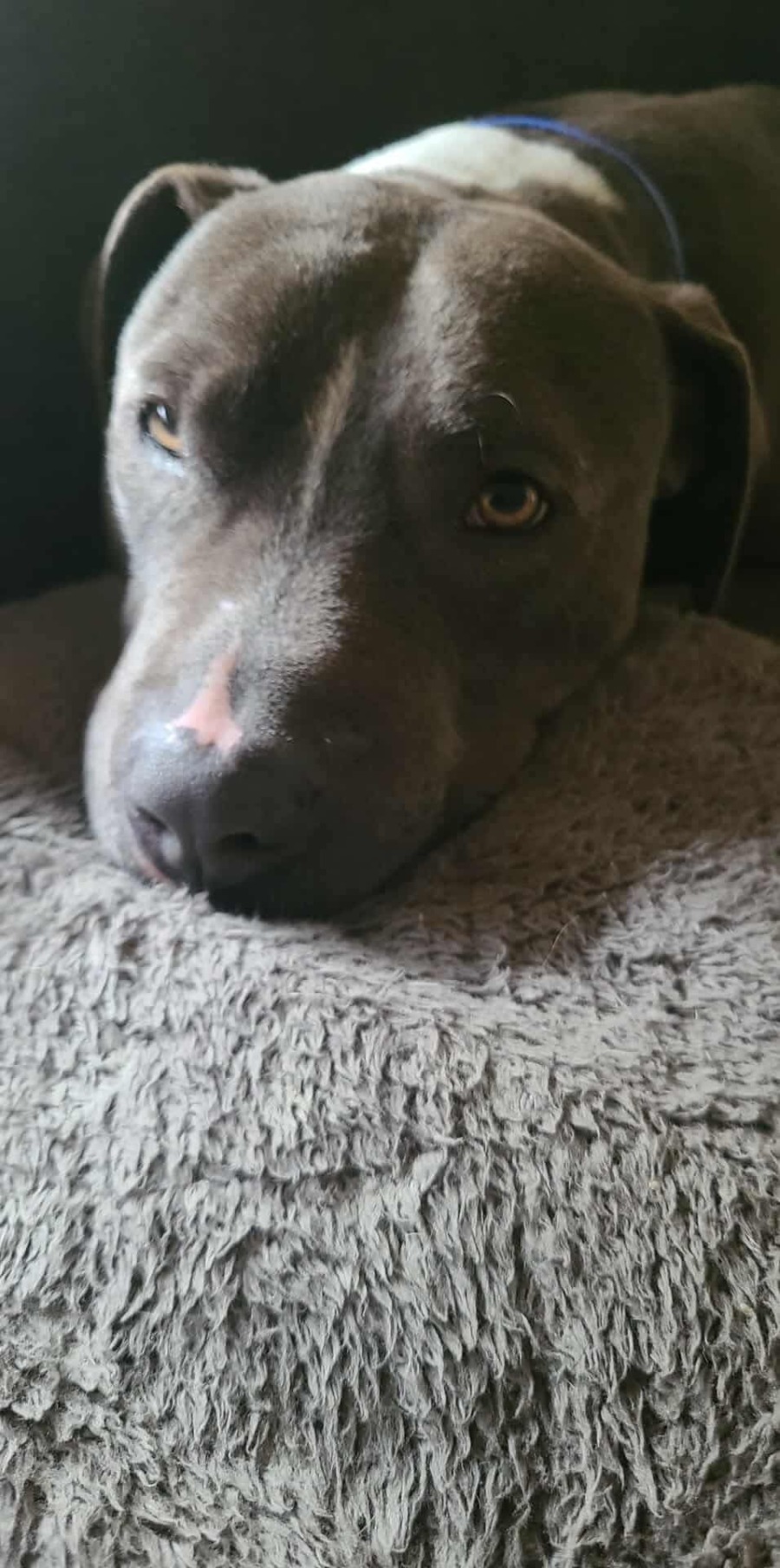 1-year-old male Blue Staffy mix | Dog friendly | No aggression | Untested with cats & kids | High energy