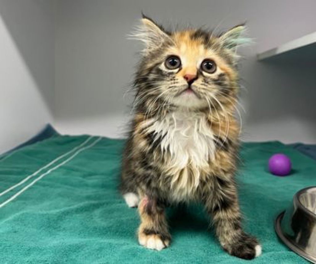 Hi there! My name is Martha, and I'm an 8-week-old ball of energy and curiosity. From the moment I arrived in my foster home, I made friends with everyone-humans, cats, and even dogs! I'm super playful and love exploring every corner of the house, from the tops of scratching posts to the nooks where toys hide. Rattle balls, toddler toys, and even curtains are fair game for my adventures.