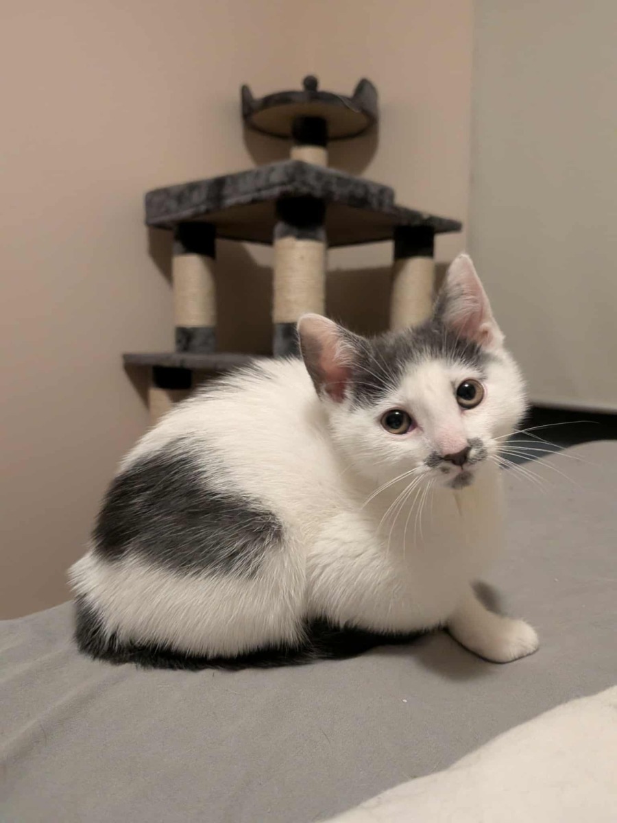 Meet Tash – a sweet and gentle little charmer with a cheeky streak that will steal your heart in seconds! This beautiful grey and white kitten is full of life and love, with the softest fur and the brightest eyes that sparkle with excitement every time she spots a toy or hears the rustle of treat packets.
