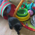 He loves to run around in his room chasing his brothers. If you wave a feather wand he will chase it till he drops, then lays down for a nap.