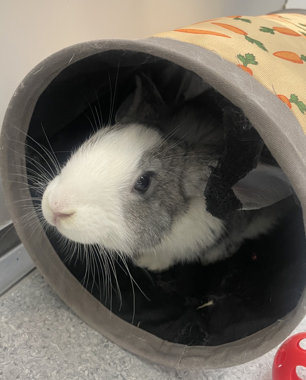 Meet Trevor and Bella ! This sweet, bonded pair of rabbits are searching for a forever home together. They can be shy when meeting new people, but they're both very easy to handle and enjoy calm, gentle interaction. With a little patience, they will blossom into affectionate companions. Enrichment is key to keeping them happy and engaged-they will delight in tunnels to dart through, hay-stuffed toys, cardboard castles, and foraging games to tickle their curious mind. They do best in a quiet home with patient adopters who can help their confidence grow. Perfect for someone looking for a mellow, loving duo