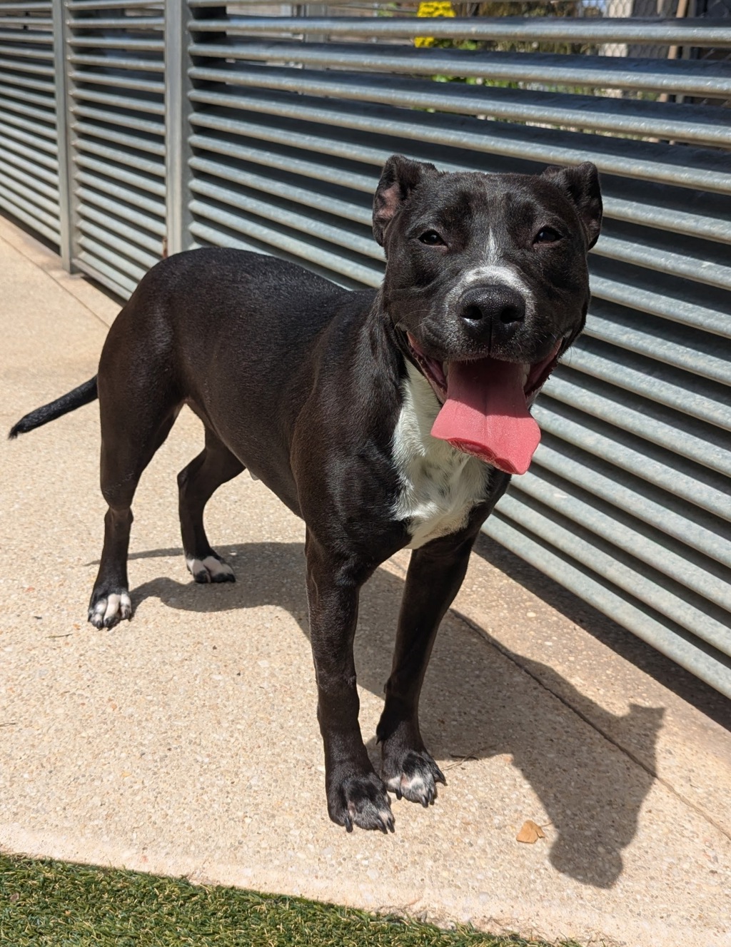 Don't let her strong name fool you - Warrior is definitely a lover, not a fighter! This young American Staffordshire Terrier is a true sweetheart with a huge, playful heart. She doesn't always realise her own strength and is best suited to a home with older children aged 10 and up. She is looking for a gentle, commited home which will help her to build her confidence. On that note - we belive Warrior might be happy living with a social and easygoing role model dog - pending a successful meet and greet at our shelter. Despite her name, Warrior can be shy at first, but she is just looking for someone to love them. With some patience and time Warrior will come out of her shell.
