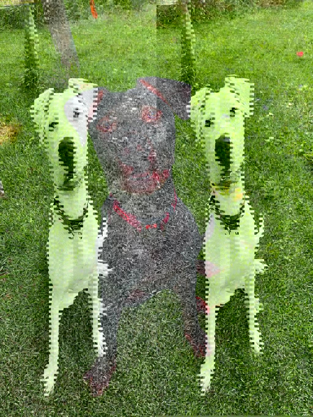 Roxy is an absolute sweetheart who lives to make her humans happy. She's active, playful, and guaranteed to get everyone smiling with her silly puppy antics. Whether she's bouncing around the yard or snuggling up for some affection, Roxy brings joy wherever she goes.
