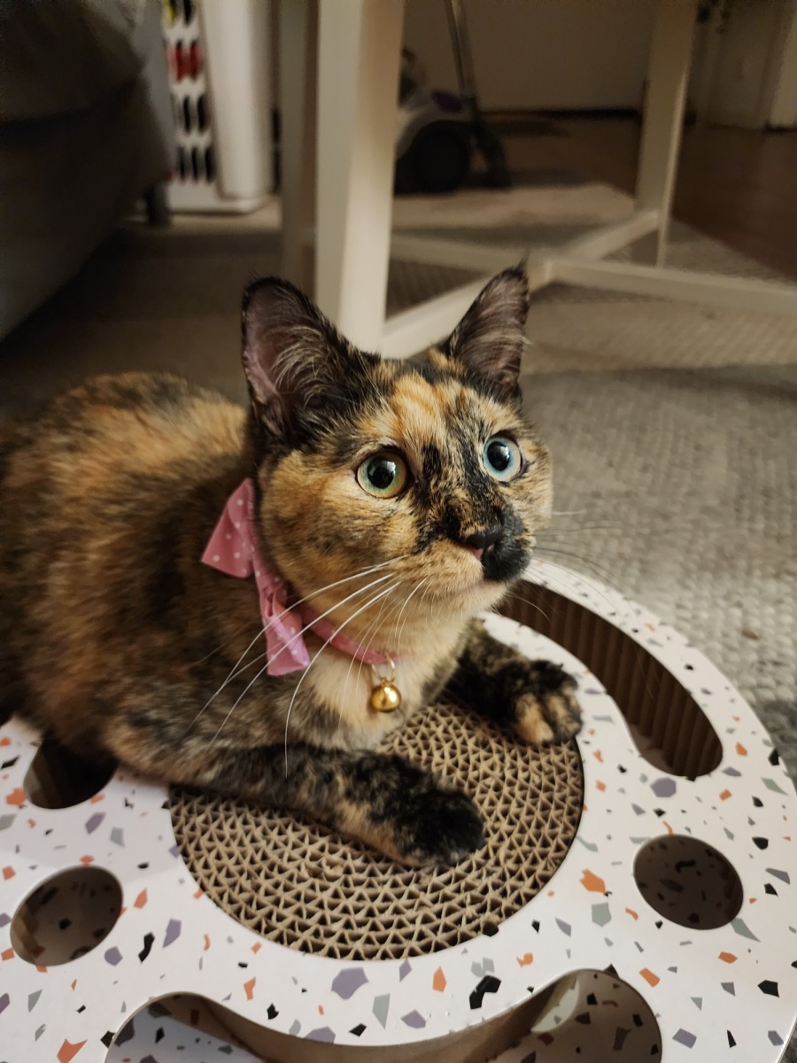 With her beautiful big round eyes and striking tortoiseshell coat, Chia is as stunning as she is special, and true to tortie form, she’s got a little bit of sass to her.