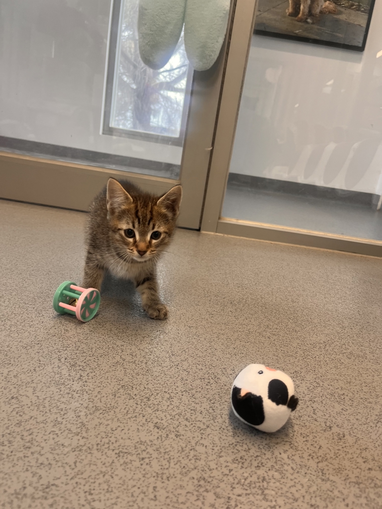 We're a bunch of adorable kittens aged from 8 weeks and up, each with our own developing personalities. Some of us are bold and playful, some snuggly, and some a little shy-but all of us love toys, especially anything that rolls or jingles!
