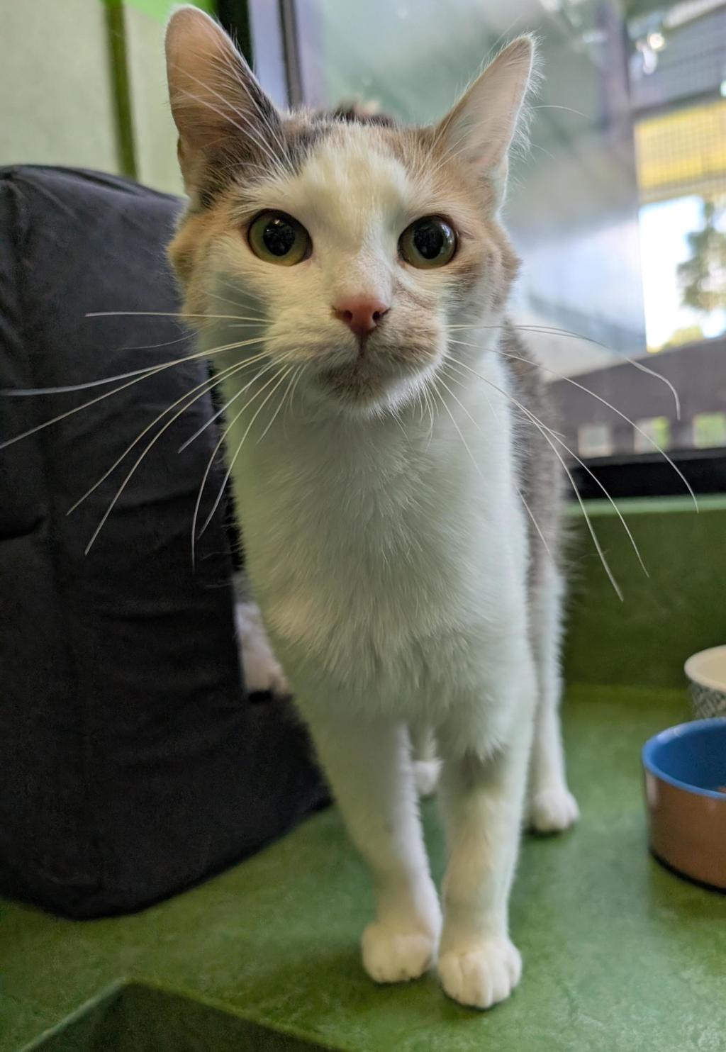 Once Bronte feels safe, her affectionate side blossoms. She'll greet you with delicate purrs, gentle head bumps, and slow blinks that say "you're my person." She loves to play, and would thrive in a home with lots of toys on offer and regular play sessions with her people.
