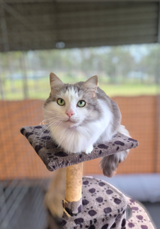 This long-haired beauty with striking green eyes is as elegant as she is endearing. Nala is sweet, independent, and loves a good chin scratch—especially if it comes with a chat. She’ll happily follow you around the house, offering companionship with just the right mix of affection and independence.