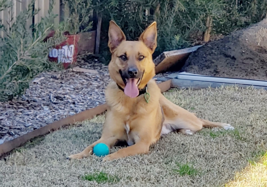 Simba is an adorable and cute five-year-old, medium-sized German Shepherd and Kelpie mix dog.