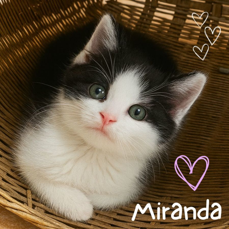 Miranda is equal parts sweetness and sparkle. She brings joy, fun, curiosity, and cuddles wherever she goes โ and sheโll slot into your home as easily as she did with her adopted feline family.