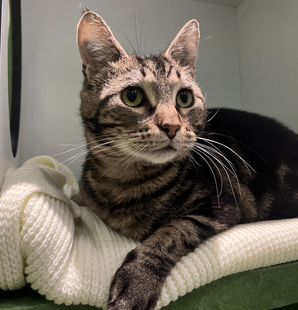Tobias is a young, sensitive soul who has made remarkable progress during his time in foster care. He began his journey as a very timid cat, unsure of new surroundings and slow to trust. With patience, predictability, and gentle interaction, Tobias has truly come into his own. He now actively seeks out human contact, enjoys physical affection, and loves to play.