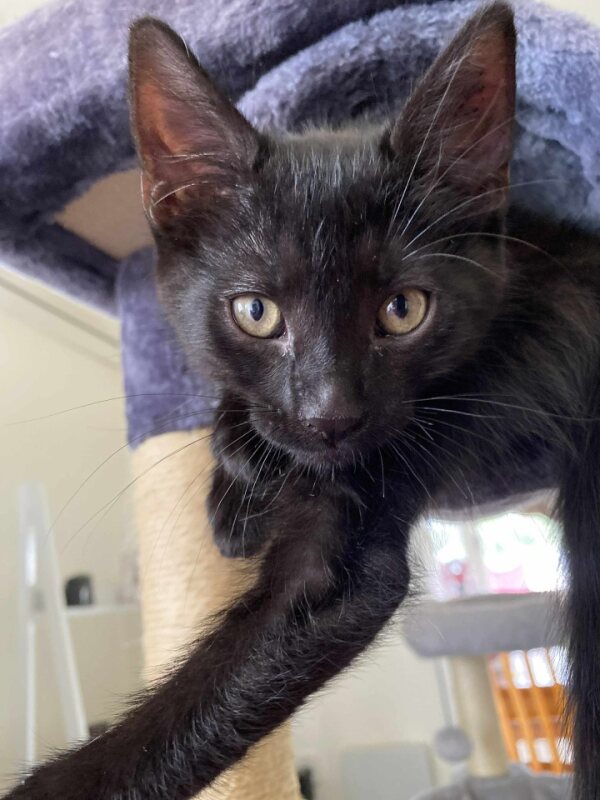 Playful and energetic, Bailey and Benny dive around chasing toys and climb and leap on the cat tree. Then they settle down to snooze and soak up in the sun on a comfy bed. This is the life – a purr-fect balance of playful and snuggly. What more could any family want in kittens?