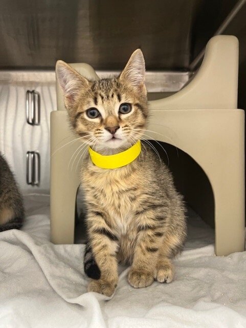Hi, I’m Orion. I’m a playful male kitten with a big purr and an even bigger curiosity. I’m 2 months old and ready for my forever home. I’m a Domestic Short Hair with a sleek coat and a heart full of mischief and affection. I love exploring, stalking soft toys, and racing around before I crash into a cozy nap in a sunny spot. I get along well with gentle kids and other calm cats, and I’m happiest with daily playtime and lots of cuddles. I’d thrive in a cat-friendly home with someone who can dedicate time for daily fun and safe snuggling. If you’re looking for a curious, affectionate companion to brighten your days, I’m your guy.