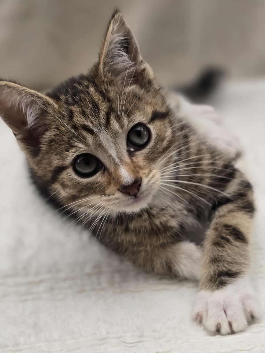 Meet Chris, the adorable and sweet little bundle of joy that's ready to bring endless love and entertainment into your life. This cute, affectionate, and confident kitten has a purr that can rival the most contented of cats and a playful spirit that is simply contagious. Chris promises to be your cuddle buddy for life, charming his way into your heart with every nuzzle.