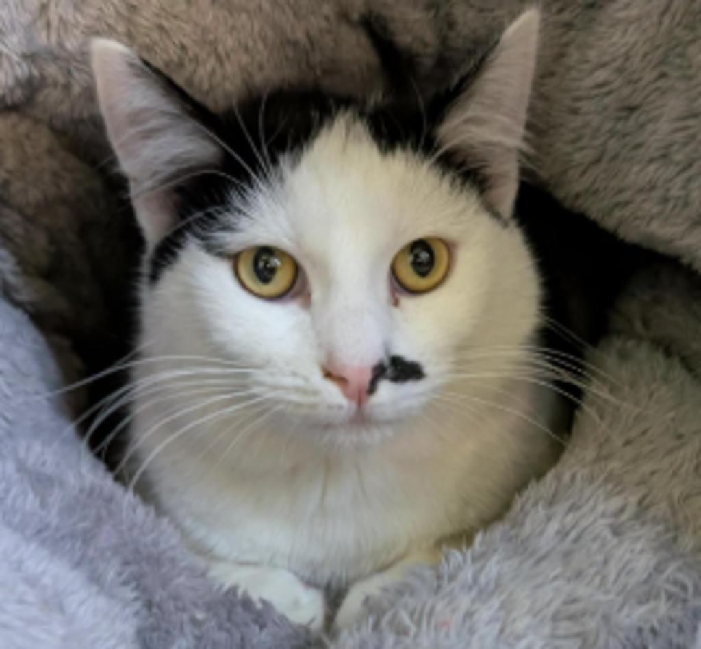 Whitesox brings the best of both worlds: playful kitten energy and warm, snuggly charm. His adorable mustache and expressive face make him unforgettable, and his loving nature makes him the perfect new friend.