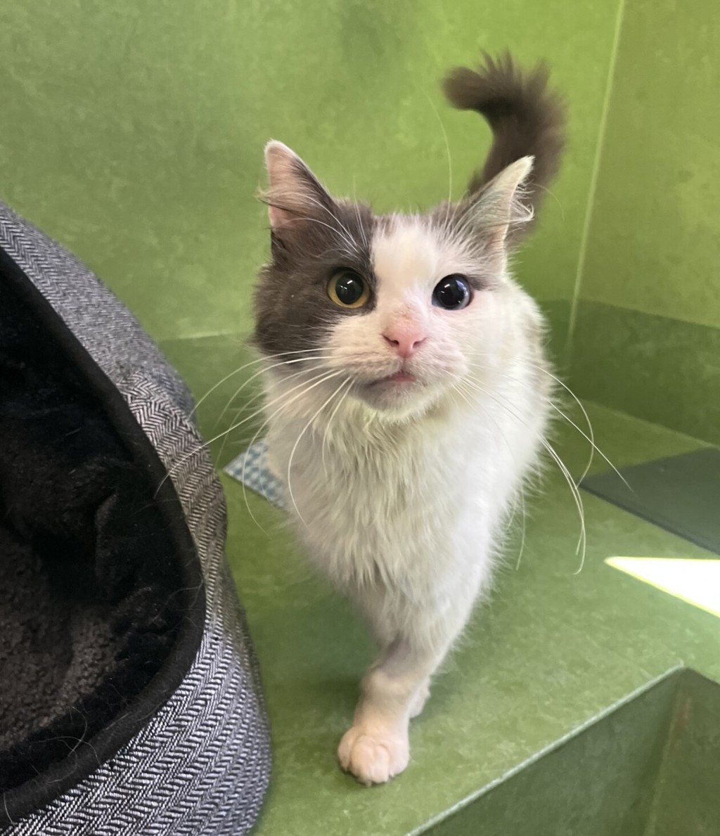 Meet the stunning Elkie! This sweetheart loves nothing more than treats, attention, and chin scratches. A slow, gentle approach will help her come out of her shell, but once comfortable, she will shower you with purrs and affection.