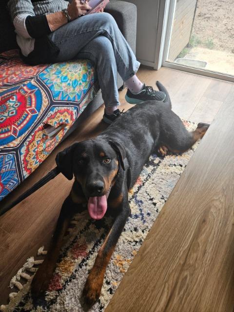 Storm does need a secure yard with good fencing and a family who can keep him busy—he gets bored easily and can be a bit cheeky if left alone. He’s working on his leash skills and can be a little nervous in the car, but with patience and play, he’ll thrive.