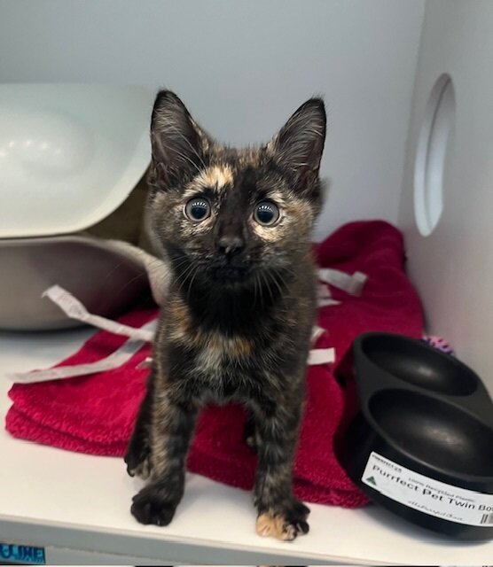 Hi, I’m Macey. I’m a female kitten, Domestic Medium Hair, with an average energy level. I’m 3 Months old, still learning about the big world, but I’m already full of curiosity and affection. I love sunlit naps, soft blankets, and gentle feather toys. I’m playful in short bursts and then happy to cuddle on your lap. I’m friendly, a touch shy at first, and I warm up quickly when you speak softly and give me steady routines. I have no known child-related issues, so I could be a gentle addition to a home with kids who are kind and patient, or with adults who adore kitten snuggles. I’m hoping for a forever family who will shower me with love, provide safe toys, and help me grow into a confident, loving cat. If you think we might be a perfect match, please reach out to meet me. I can’t wait to start our life together.