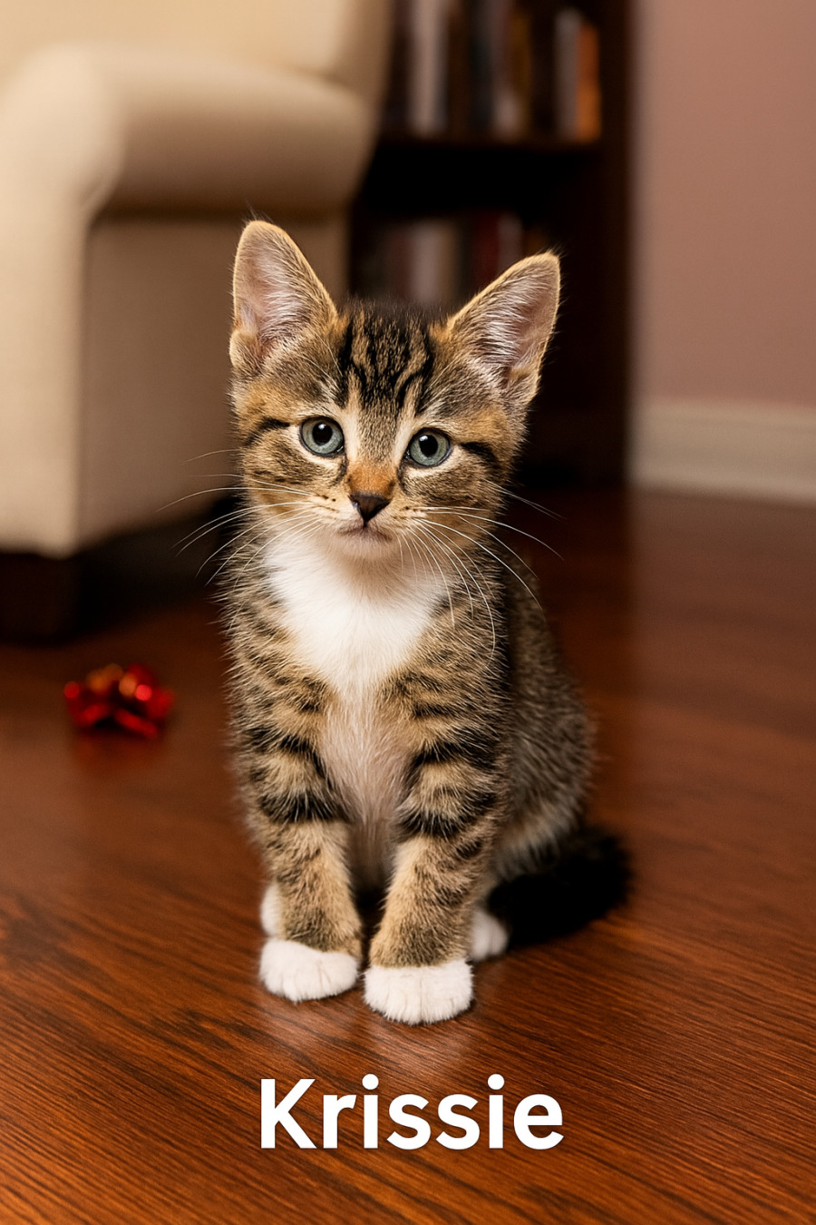 This delightful little girl lights up every room she trots into. She’s the kind of kitten who brings instant joy wherever she goes — a sweet little spark with a heart full of love.