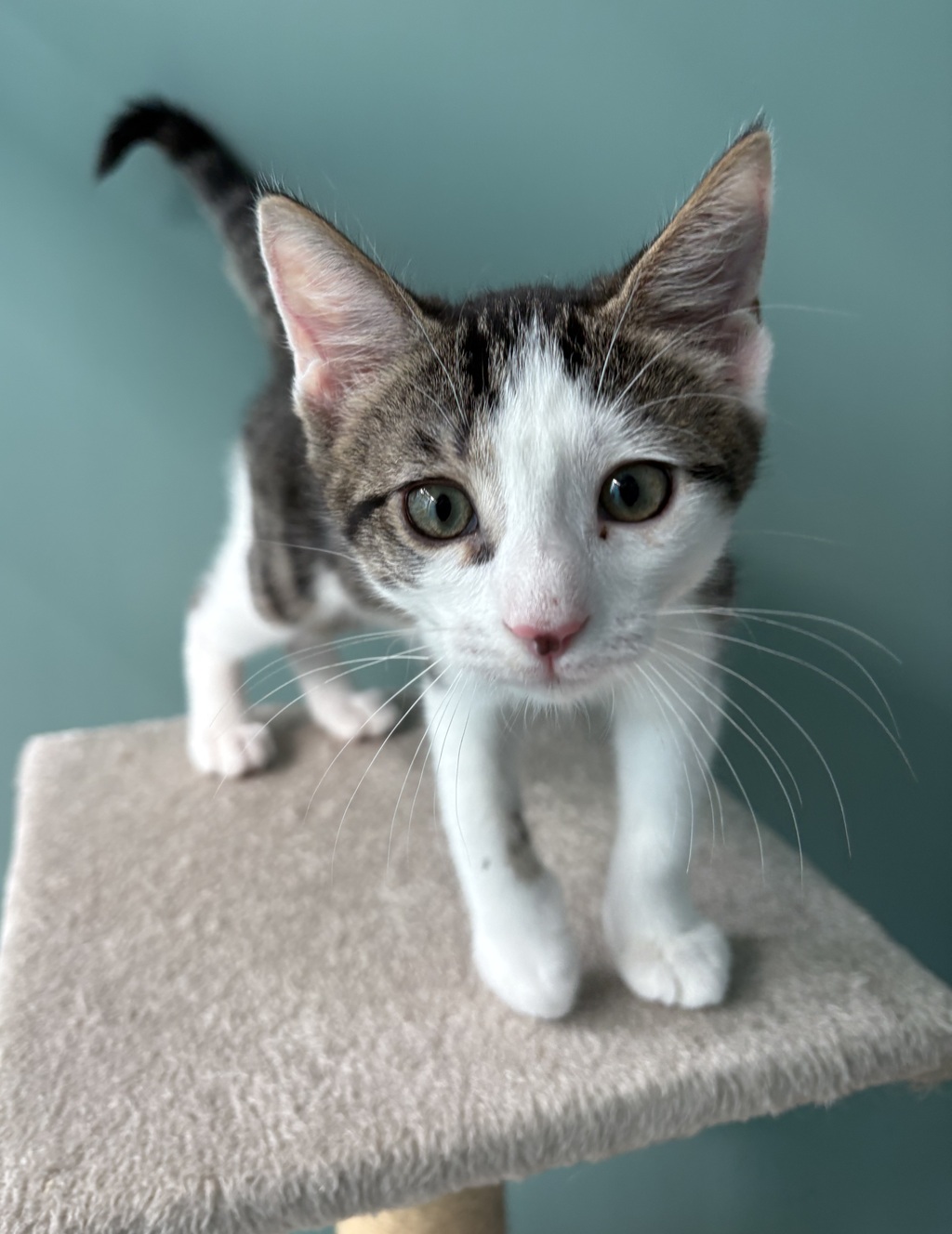 Hi! I'm Winston, a kitten full of energy and love. My days are packed with fun as I chase toys and explore every nook. I adore cuddles and will purr loudly to show my happiness when you're near. I'm looking for a forever home where I can share all my love and playful antics. Adopting me means endless fun and companionship. Let's make memories together!