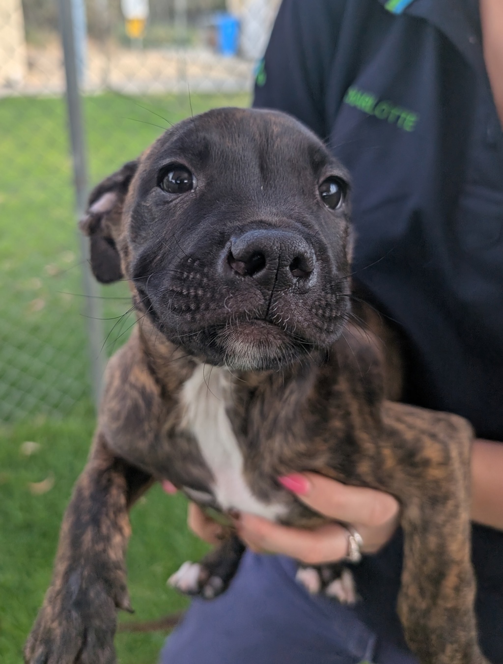 Hi there! I'm Judy, a bouncy little Staffy x Boxer pup with a heart full of love and a tail that refuses to stop wiggling. I'm small, curious, and very excited about absolutely everything!