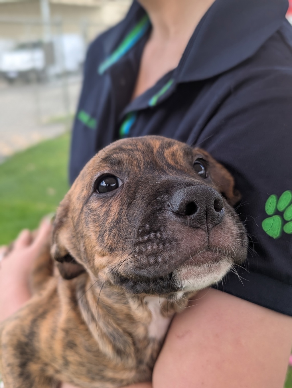 Hi there! I'm Elroy, a bouncy little Staffy x Boxer pup with a heart full of love and a tail that refuses to stop wiggling. I'm small, curious, and very excited about absolutely everything!