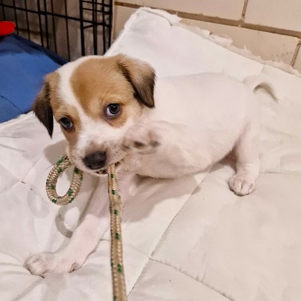 Kipper is an energetic, bright young pup who loves zooming around, investigating every corner, and playfully chewing on his favourite toys. He’s a confident little guy too, for such a young puppy, he can settle himself nicely for some quiet time. Kipper absolutely adores cuddles, especially tummy rubs, and loves nothing more than napping beside you… even if he sometimes wiggles because he’d prefer to keep playing! He’s affectionate, people-focused, and always keen to engage.