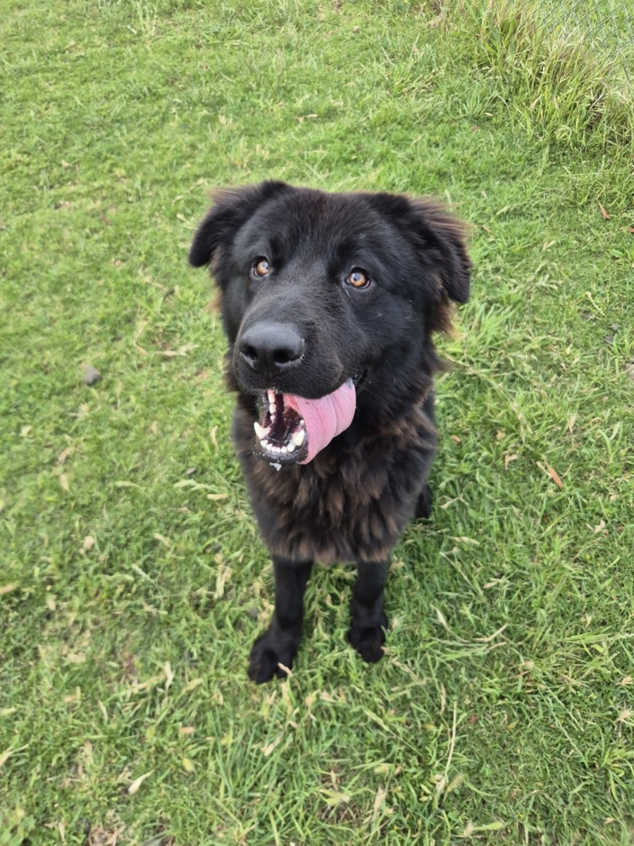 Meet Ulf, our one-year-old all-black German Shepherd who looks like a majestic wolf but is really just a tender-hearted boy trying his best. He arrived as a shy stray with little confidence or training, but he's been blooming into the most wonderful companion. Ulf absolutely sparkles when he has a calm, steady dog to follow, and he'll thrive with an owner who can guide him with kindness, structure, and confidence (not cuddly babying - he likes a leader!). He's working hard on his lead manners, loves being included in adventures, and needs an active home committed to helping him grow braver every day. Ulf may suit respectful dog-savvy kids 10+, and hasn't been tested with cats or pocket pets. Please submit an application via our website.