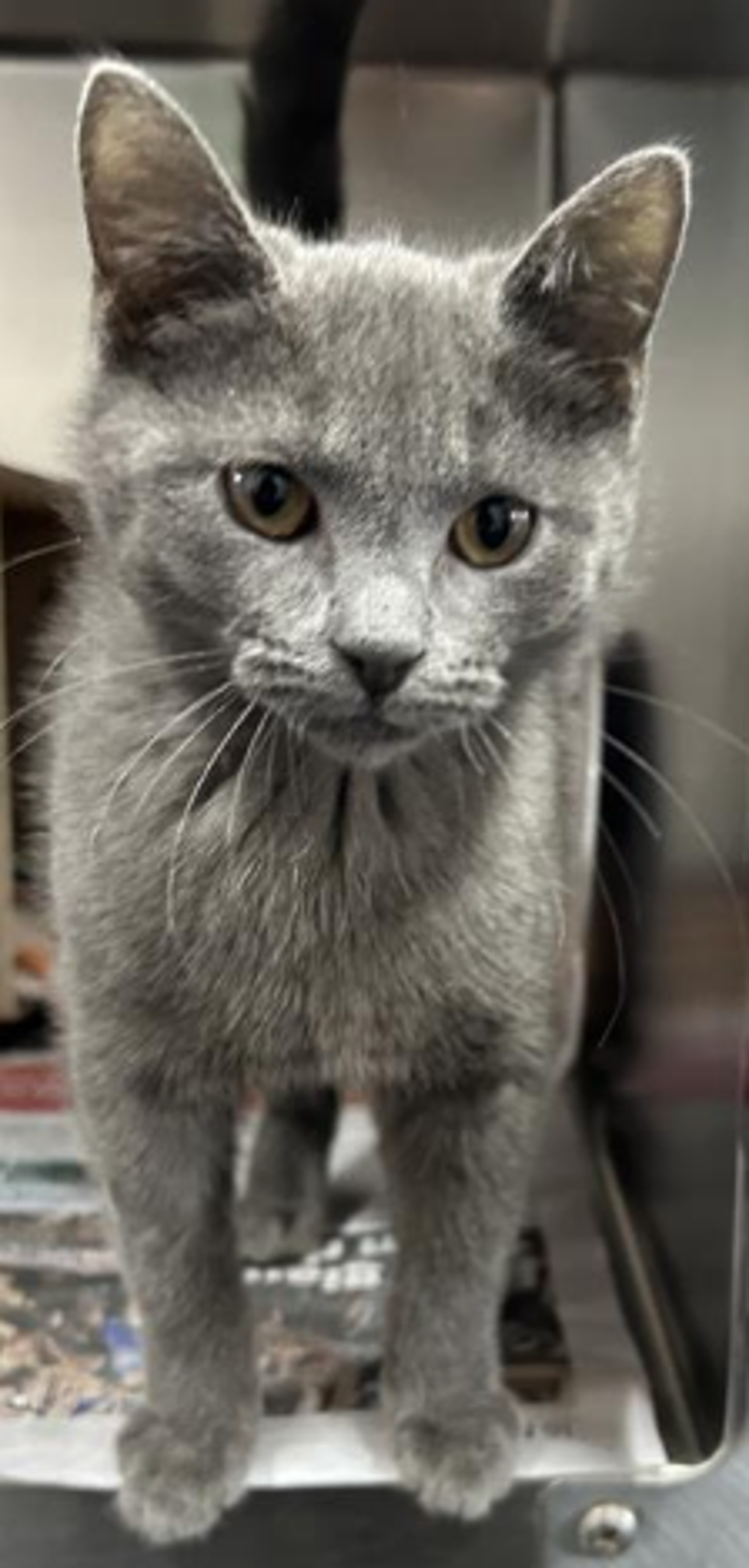 This 4-month-old grey male kitten is adventurous, social, and ready to leap into your life (though he promises not to pull a rabbit out of a hat like Bullwinkle).