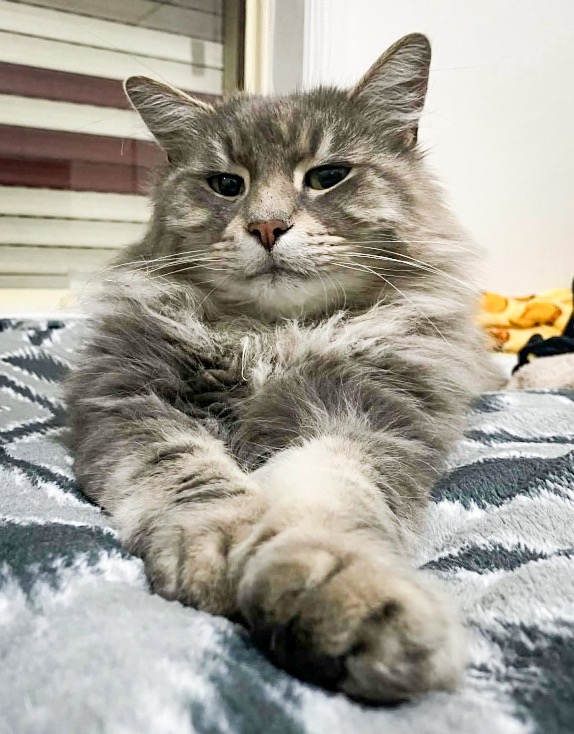 Roman has a stunning, long coat which gives him a regal appearance, and the sassiest, human-like meows that tell you exactly what he’s thinking. His owners think, without bias, that he is the most handsome cat to have ever walked the Earth (look at him!). He gets the occasional shave to help maintain his coat. Due to moving overseas, his owners have made the difficult decision of looking for a loving home for Roman to retire in. Because of his age, Roman is unable to travel, and his owners want what is best for him.