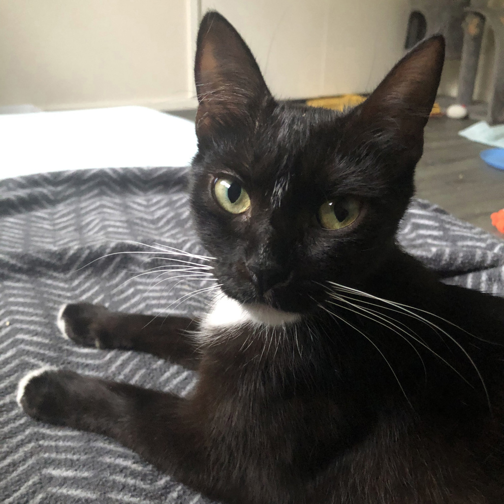 Dianna is a beautiful one-year-old black and white sweetheart who's ready to enjoy life on her own terms after lovingly raising her four kittens. Now that her mothering days are behind her, she's blossoming into the affectionate young cat she truly is. Dianna has a gentle, sweet nature and is happiest when she can curl up on a warm lap, soaking up attention - and melting into your hand when you scratch her chin.